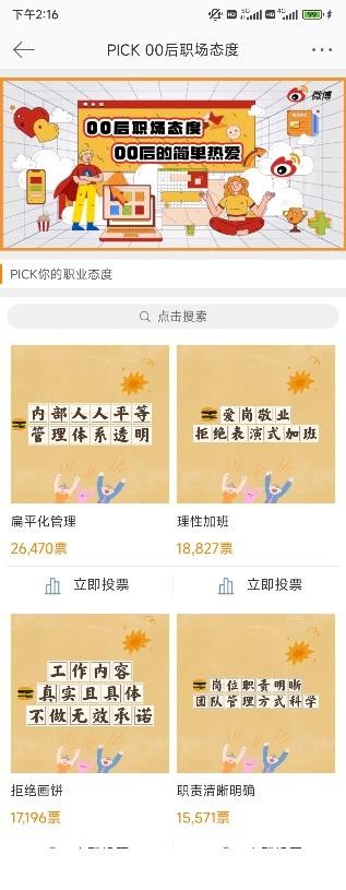 例如在话题页面,除了通过创意设计、TVC插片和安排@麦当劳 作为特约主持人增强品牌露出,还可以点击图片card直接进入“年轻人喜爱的职场态度”投票活动。而作为一个贯穿活动前后的投票活动,这不光持续吸引着年轻人对话题的关注,也达到了双向交流的目的,为话题运营提供了高质量物料。而衍生话题#欧阳娜娜说简单才够味#的话题页card,则能够直接跳转麦当劳小程序下单,提高用户转化效率。