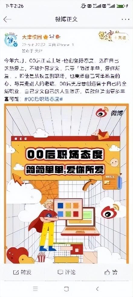 如果说渠道引流是引爆#00后职场态度#话题声量的“火药”,那么传播物料就是让品牌随话题出圈的“引信”。而微博校园在年轻用户相关的内容策划与运营经验,则为麦当劳结合用户内容喜好顺利切入话题,提供了丰富的角度和巧妙的内容组合方案。