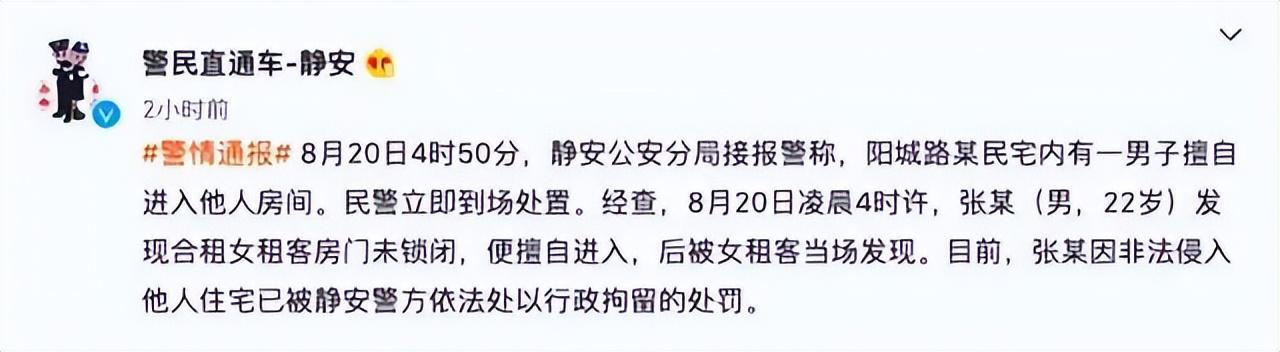 男子半夜摸进合租女孩房间,警方通报:已被行拘!