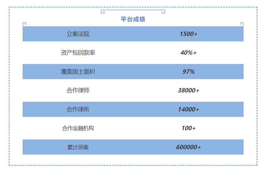 律鲸平台是链接律师群体和金融机构,进行个人信用不良资产批量司法处置的智能云平台。金融机构在平台上派发海量案源,律师在平台上自主选择代理批量案件,平台进行全流程精细化规范管理,引导高效办案,实现互利共赢。