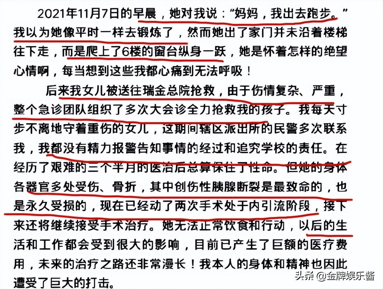3.邵一卜因校园霸凌轻生,住院好几个月,手术做了两次, 身体多处骨折,胰腺断裂最致命 ,对她的整个人生都是毁灭性的打击。