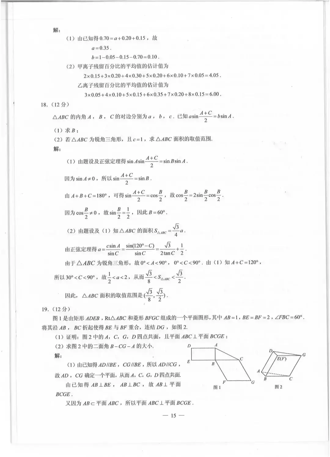 19题立体几何,是翻折问题,主要考察学生的空间想象能力及处理问题的能力。