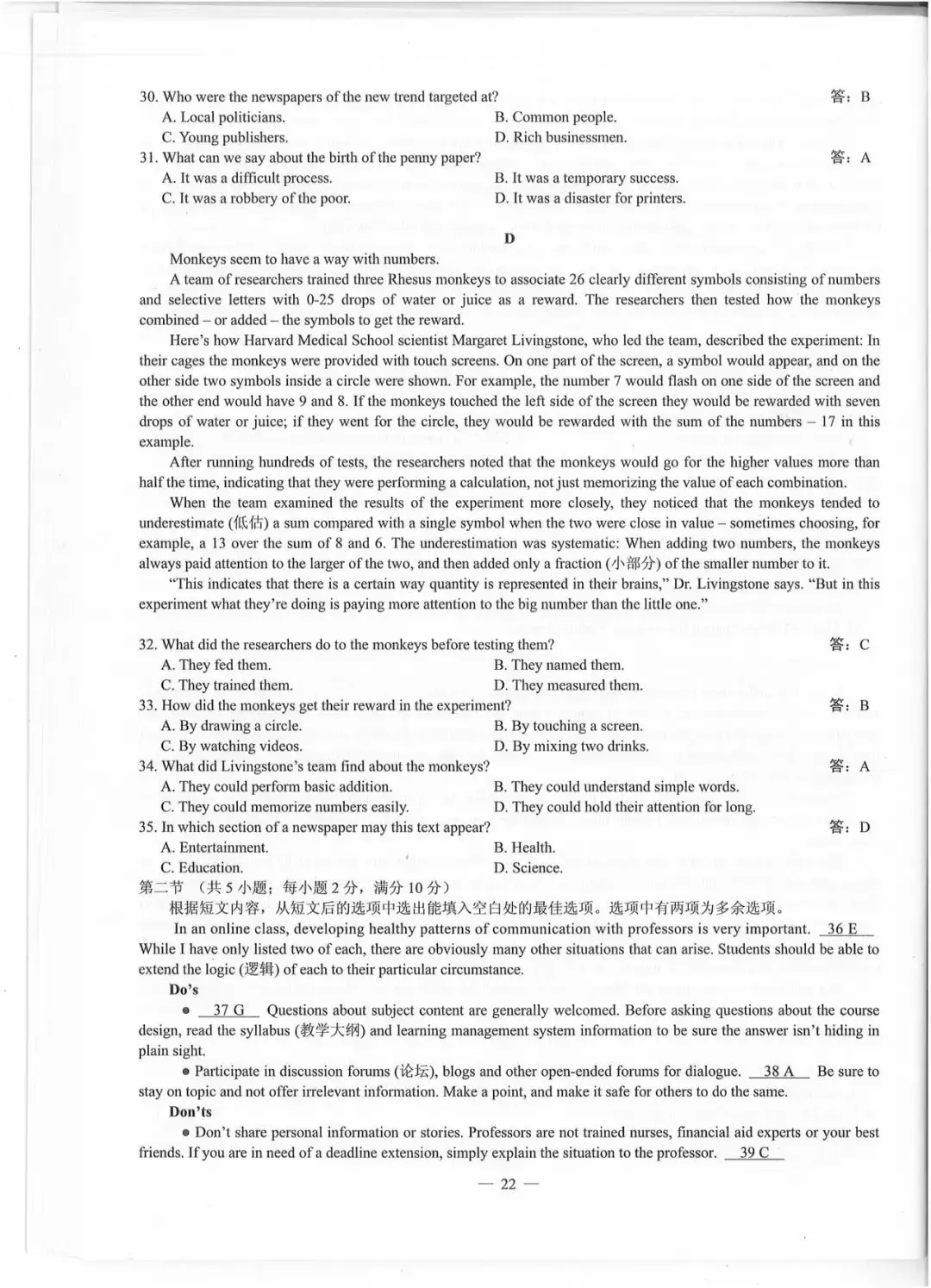 4、第21题考查了好多年都没有出现的“概括新闻要点”这个考点。