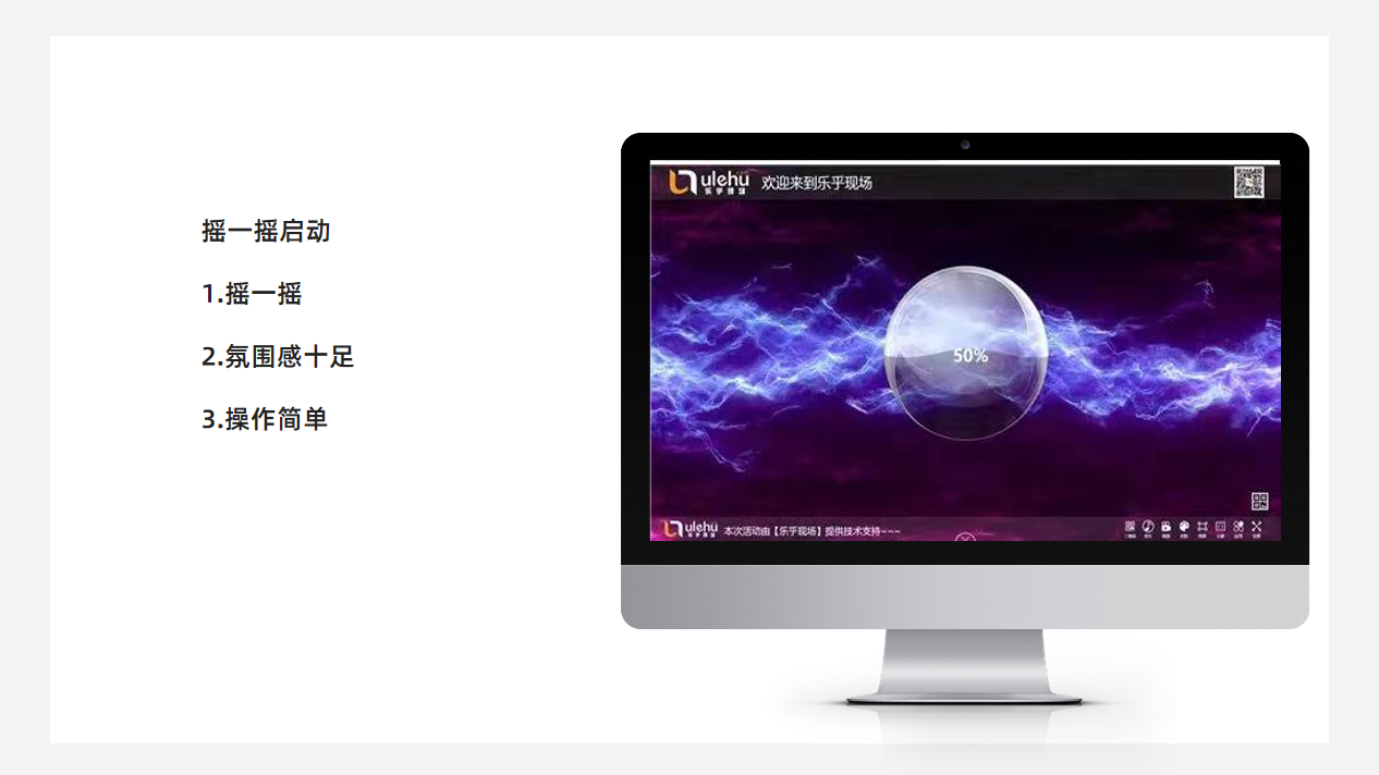 今天向大家介绍使用大屏幕摇一摇作为启动仪式的方案。它能够在各类活动现场中实现启动仪式的效果,大家只要摇一摇手机,并且所有人都可以参与,互动性极强。在启动仪式之前,所有人可以通过扫大屏幕上的二维码参与其中,主持人宣布开场之后,大家一起拿起手机进行摇一摇,大屏幕上的水晶球在摇一摇的启动值达到百分之百的时候,大屏幕上就会显示启动成功,即完成启动。