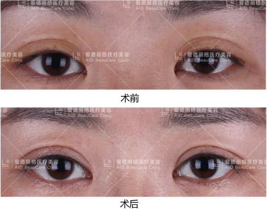 她小时候外伤,3岁的时候提肌腱膜断裂。22岁的时候手术矫正上睑下垂,效果不好,留下疤痕。