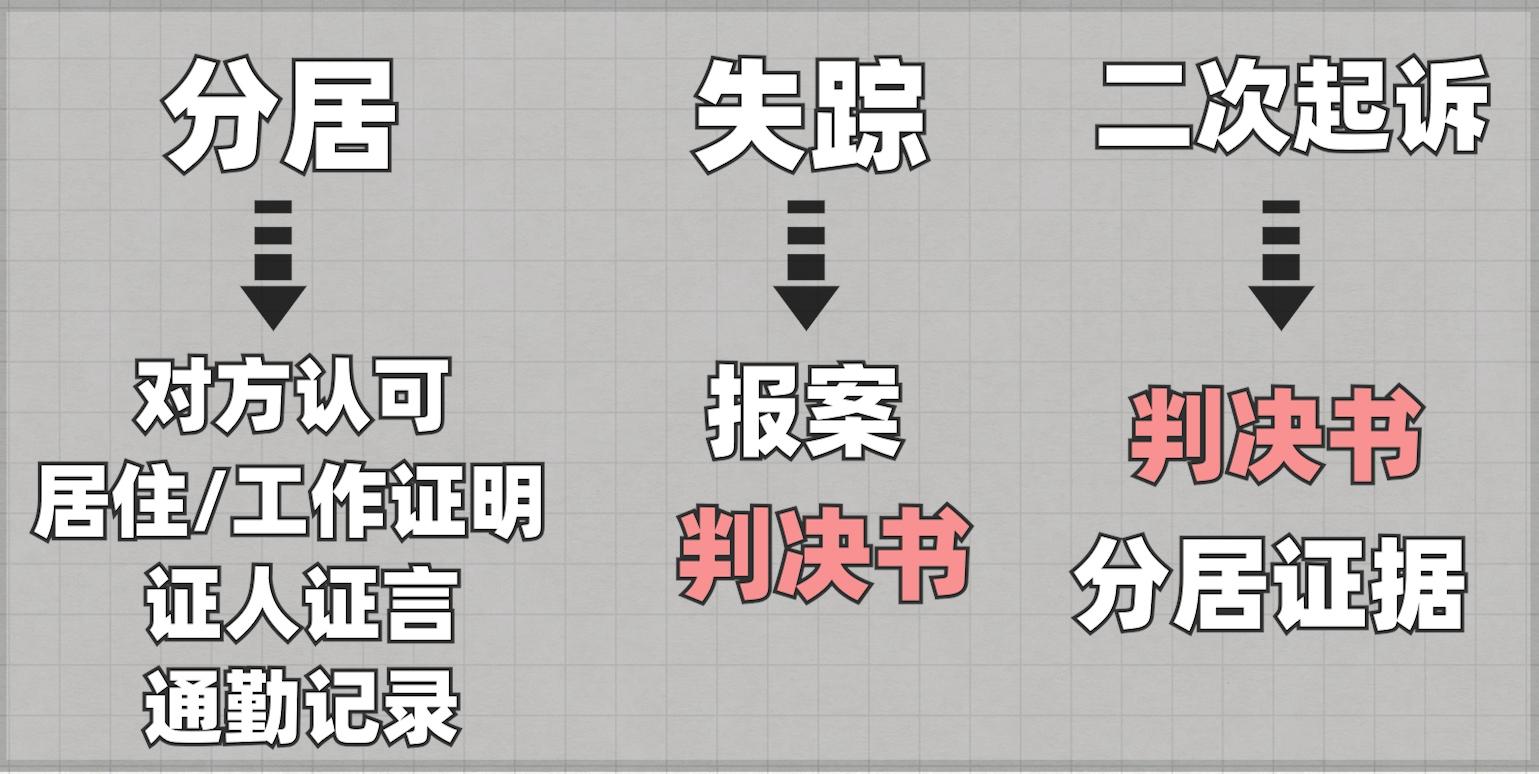 分居的证据较难收集。对方如果认可,那么不成问题。不认可的情况下,如果是分居两地的,那么提交自己的居住证明或者工作证明就可以了。但如果是同城,那么可以先去居委或村委开居住证明,同时提供证人证言来证明双方分居的事实。自己的通勤记录,也可以用来证明自己的实际居住地。如果对方不能提交相反的证据来证明你们还在同居的,那么法官一般会认可分居的事实。