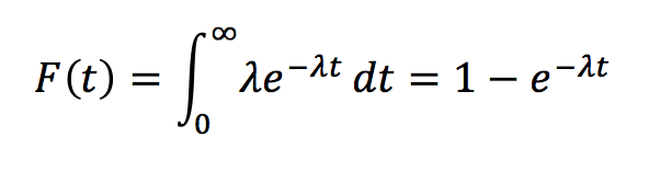 可以从泊松分布来理解指数分布。对于泊松分布,t时间内事件发生次数为0的概率为:
