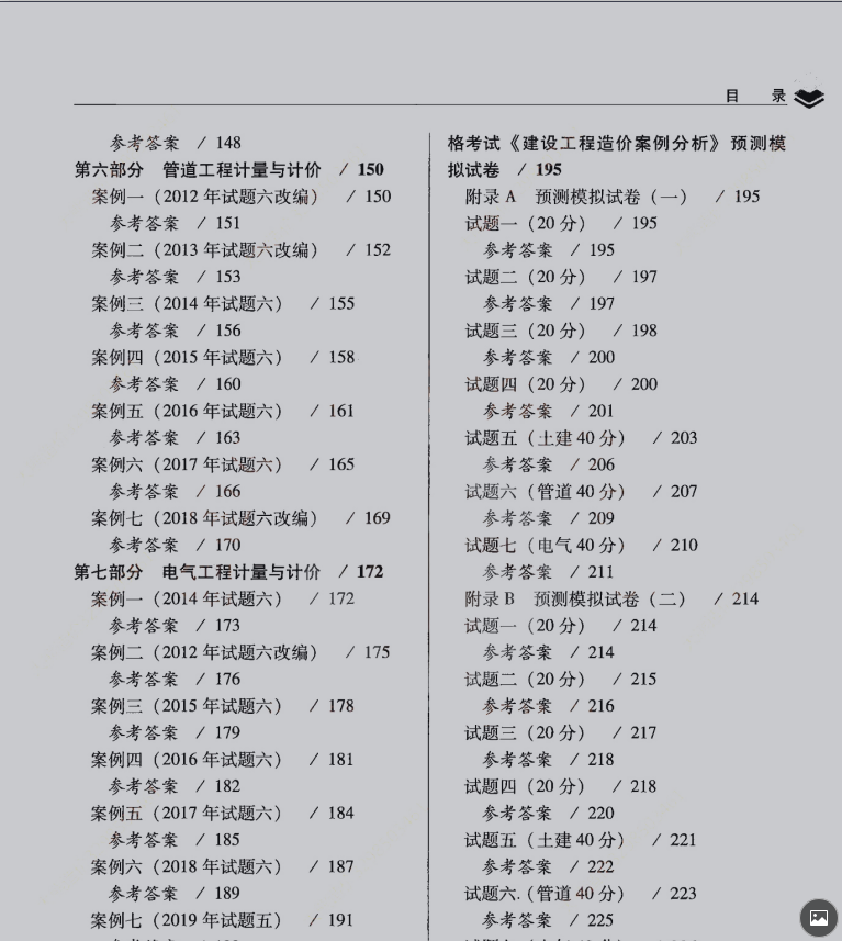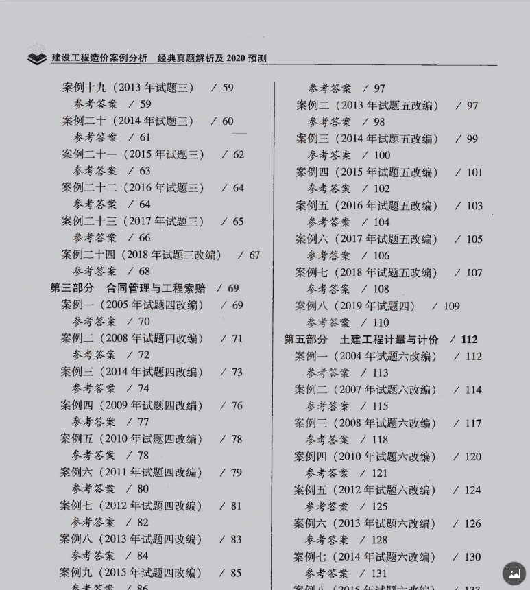来说说我的考后感吧,案例分析:最后一门考,考试时间为4个小时,也允许提前交卷(我考场就1个人在3小时的时候提前交卷)。因为案例分数由原先的140分调整为120分,具体题量也从6题减为5题,今年的试卷中把决策树融入了价款调整进行考察。试卷总体难度适中,考点也很常规,再加上通过对建设工程造价案例解析(红宝书)的理解,轻松考过不是问题。今年就看你的了。