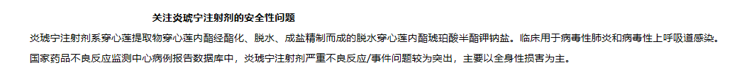 2012年,食药监总局发布药品不良反应通报,提示警惕喜炎平注射液对呼吸系统、心血管系统等造成严重不良反应。