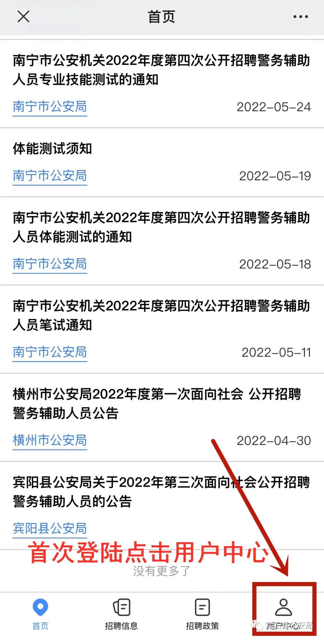 PC端在互联网上搜索南宁市公安局官网,进入南宁市公安局辅警招聘网(网址:https://auth.gaj.nanning.gov.cn:35443/)。手机端请扫描公告结尾二维码进入辅警招聘栏目,或关注“南宁警方”微信公众号,点击网上服务——南宁辅警招聘。