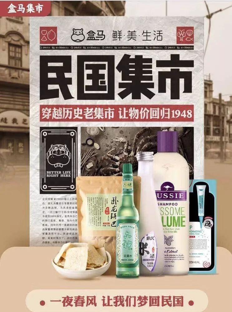 不只是借势营销会翻车,品牌自己精心的策划营销事件也有随时翻车的可能。盒马鲜生在4月份就策划了一场“民国集市”的活动,原本是不错的创意,但偏偏海报上的一句文案——「让物价回归1948」惹了大争议。