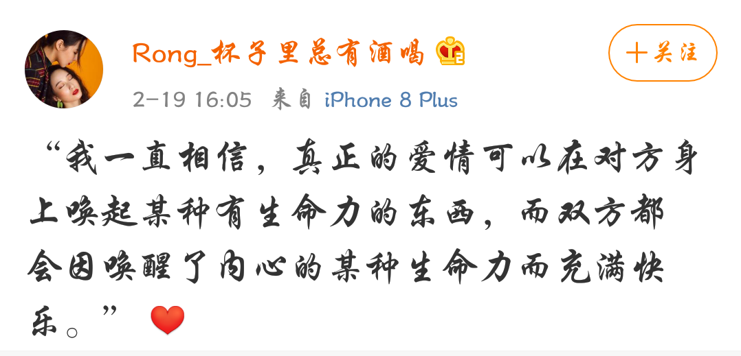 爱情就该是这样的不顾一切,不掺杂质,无关其他,只是爱了而已。