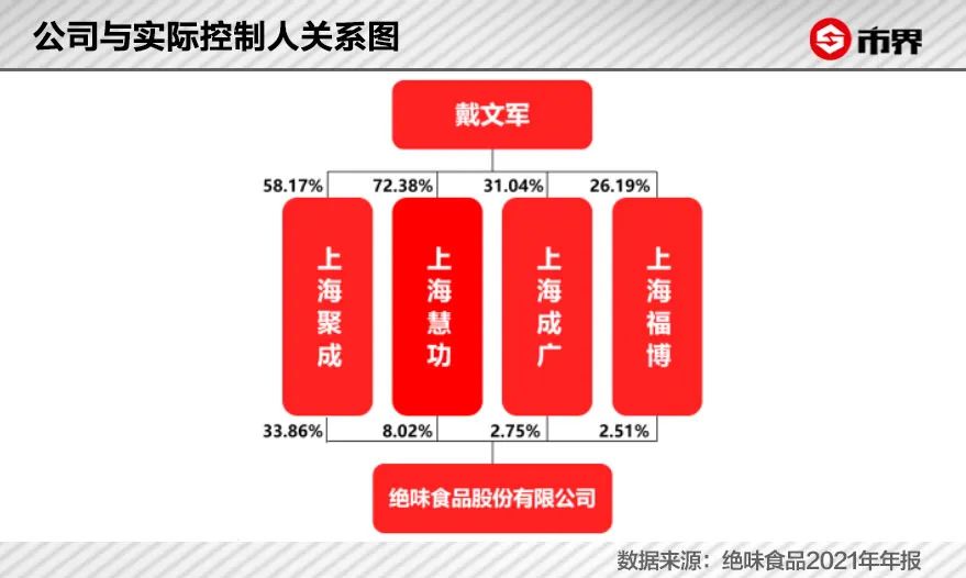截至2021年底,绝味食品实际控制人为戴文军,其间接持有绝味食品27.01%的股份,较2020年底不变。绝味食品本期股东持股集中度较低,前十大股东合计持股56.5%,较上期59.85%略低,持股集中度在全市场中排名2345/4708。