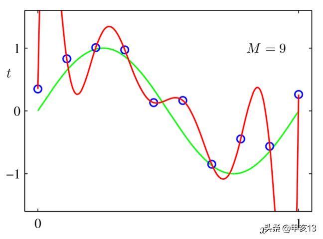 红色线就是过拟合情形,给它添加规则,即添加一个限制;规则化就是说给需要训练的目标函数加上一些规则(限制),使其不要自我膨胀。