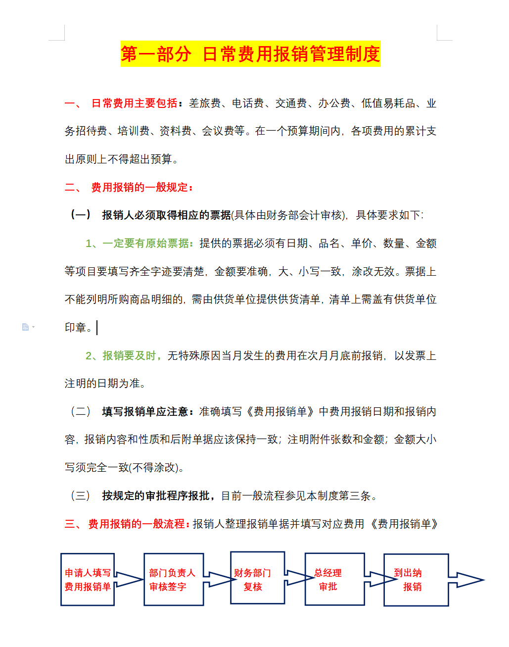 公司的财务管理制度一直特别乱,大家也都是按照规章制度办事,一直乱下去的话也影响工作,尤其是财务报销方面,于是我们财务总监就重新制定了一份财务管理规章制度,从日常费用报销到采购流程、业务招待管理、差旅费管理等,共6大方面,非常全面,下面分享给大家,可以做个参考~~