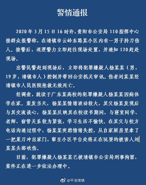 近日,贵州省清镇市公安局通报了一起案件,在3月15日,19岁大学生挥刀砍向了一位在小区中玩耍的2岁女童,小女孩经抢救无效不治身亡。究竟发生了什么,让一个正值青春年华的少年,选择去终结一个尚未对世界有多少认知的小女孩的宝贵生命呢?