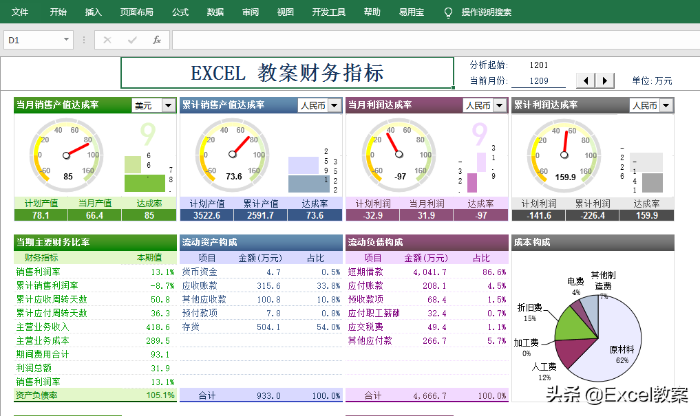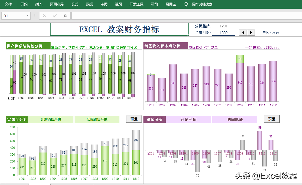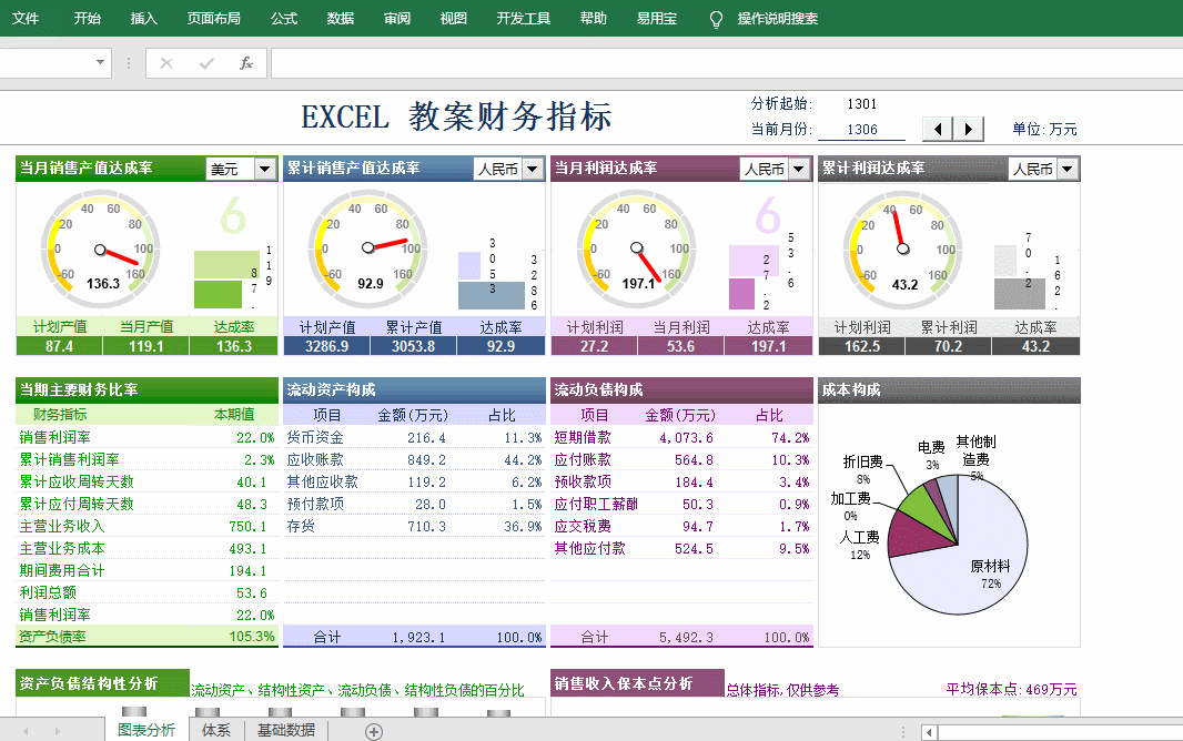 还可以看到,我们资产负债结构、赢利点是否平衡,完成任务分析指标。