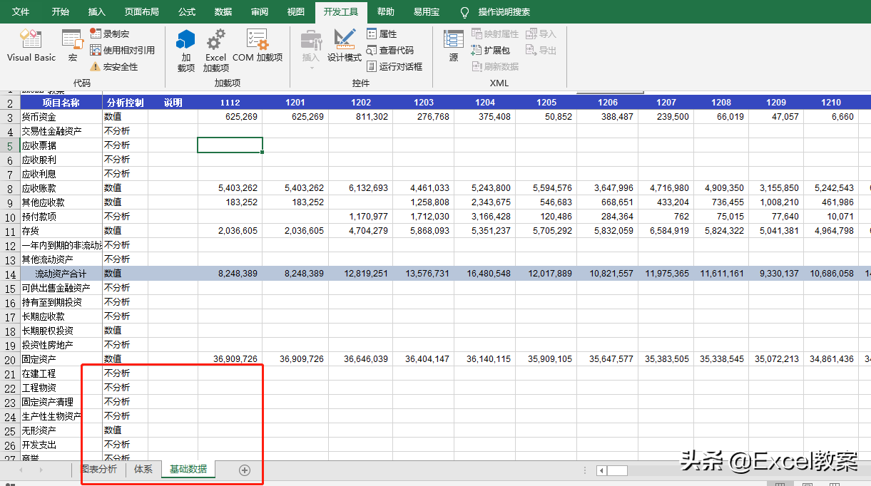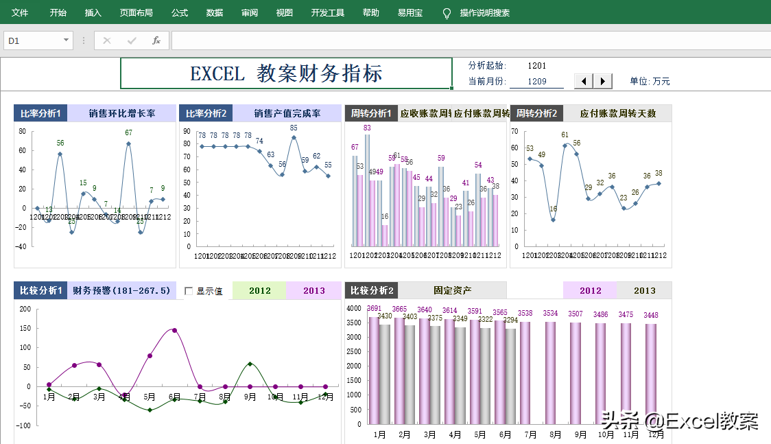 然而需要得到上面的数据,只需要我们按照月份进行基础数据维护即可,就可以得到我们需要的数据,是不是很简单。基础数据的年月,可以修改,只要保持一年12个月不间断就行。