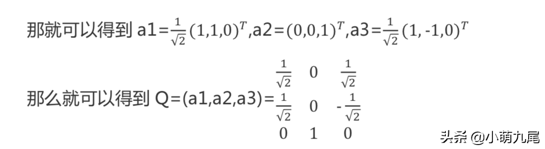 由于特征向量已经两两正交,那么我们只需要单位化即可