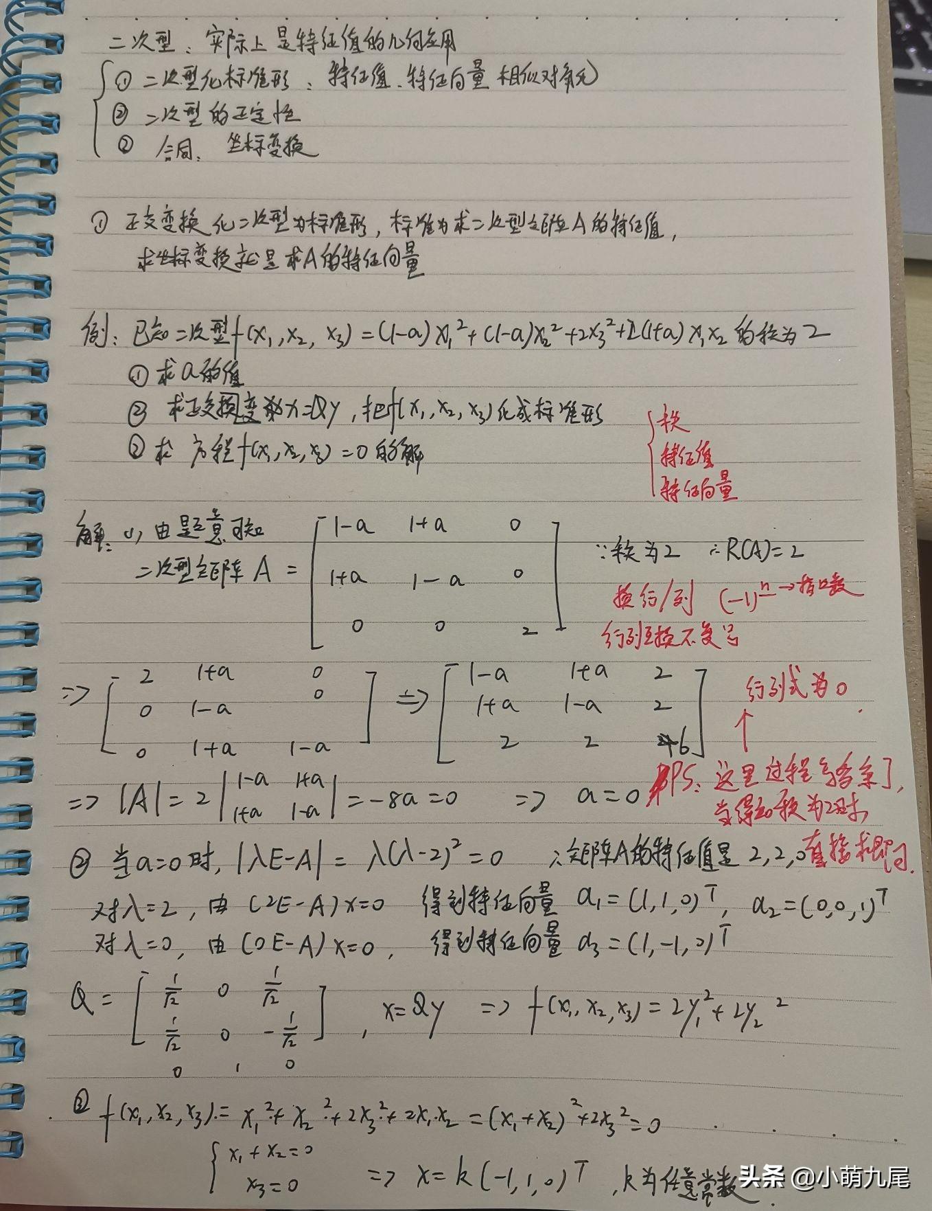 线性代数中的二次型,实际上是特征值的几何应用,概念仍需加强理解