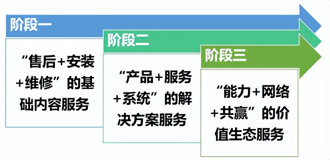 工业4.0时代,数字化技术以及客户需求成为制造企业服务化转型升级的自然催化剂,以客户需求引领服务方向,以数字技术驱动服务效率,从基础服务到解决方案服务,再到价值生态服务,是制造企业服务化升级战略的必由之路。
