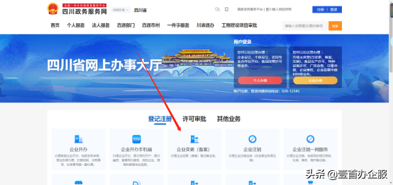 1、进入当地政务服务网,以四川为例。进入四川政务网(http://www.sczwfw.gov.cn/)企业变更登记栏目。