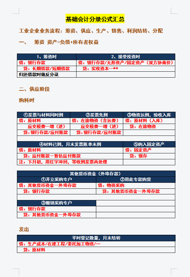 小师弟去面试,回来给我说面试上了,还是有一个有经验的老会计带着,一听觉得面试很顺利,这么快就拿到了offer,而且面试官对他的印象还是很好的。过来一段时间又给我吐槽说,自己差一点就工作不保。他说,带他的刘会计检查他的基础会计分录,有些地方没有回答上来,气得刘会计差点辞退他。后来给他了这份基础会计分录表格,让他三天什么工作都不做,就记这个,记不住就走人。后来人留下了,也成为了刘会计最为得力的助手。下面就让我们一起来看看这份基础会计分录吧!