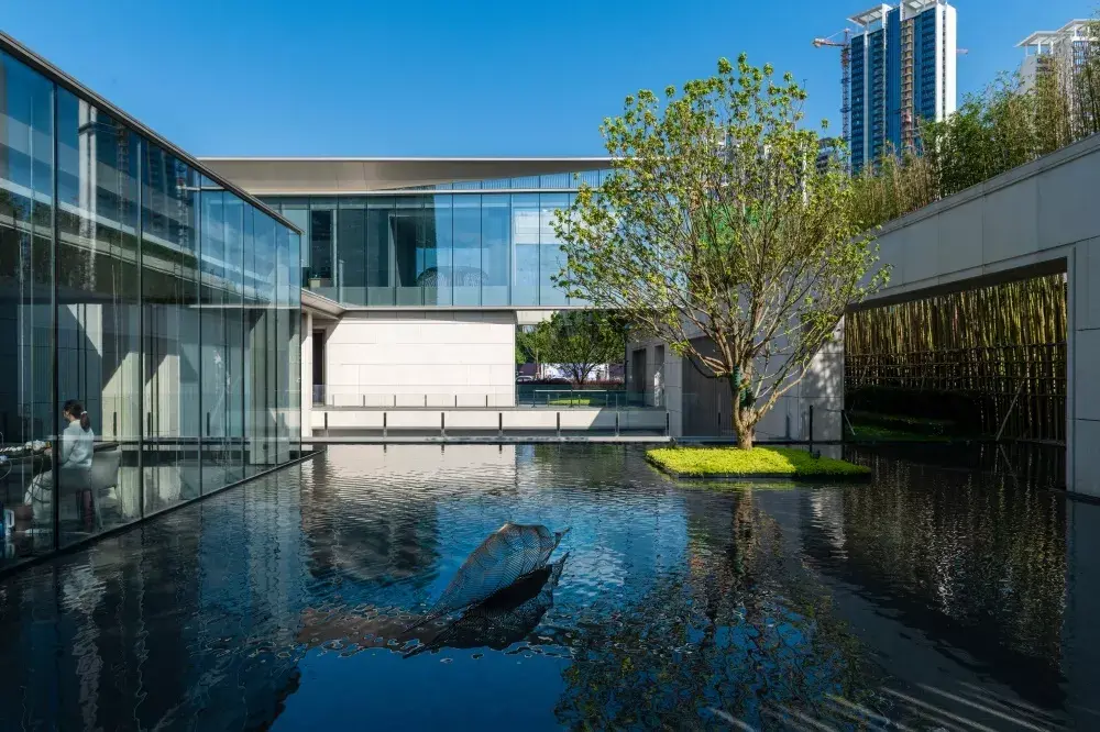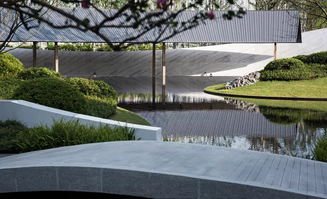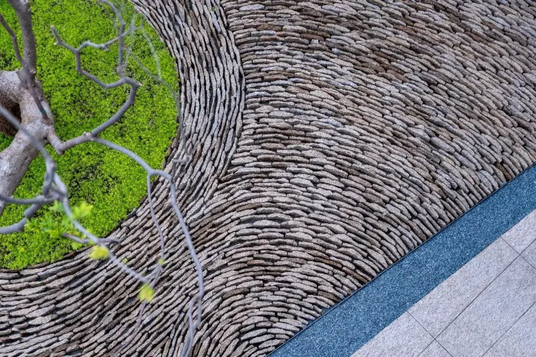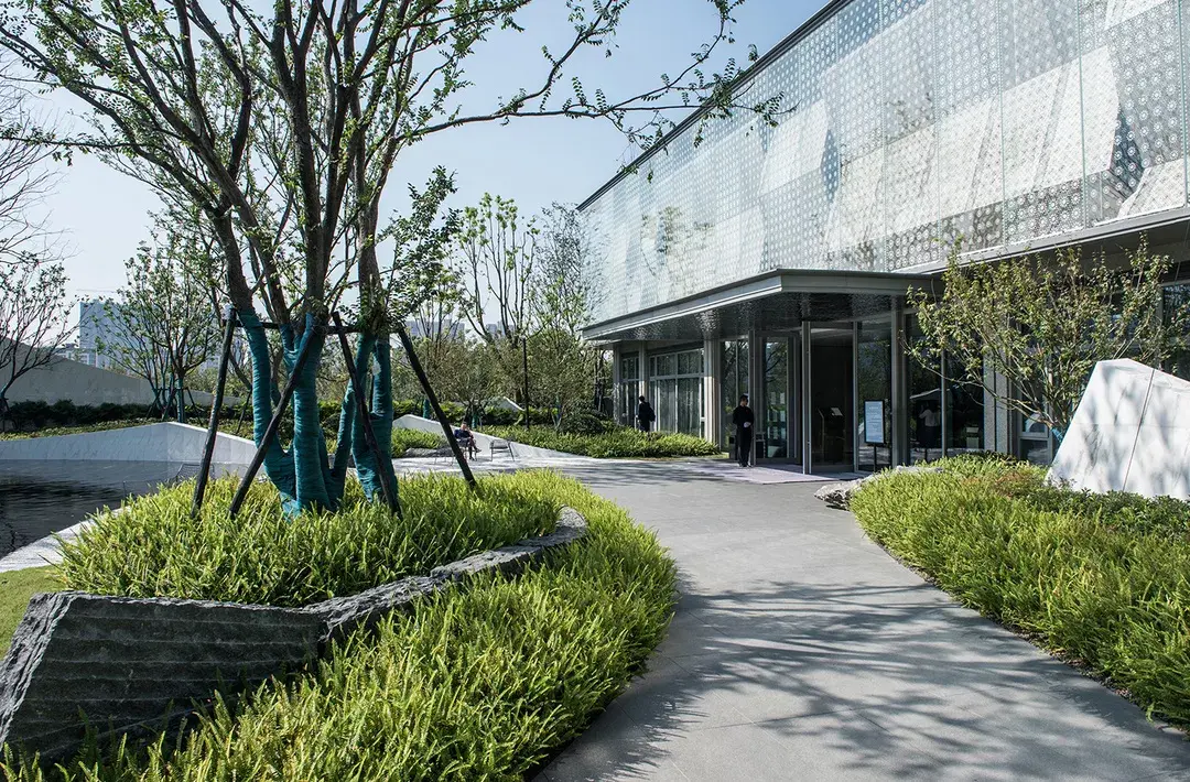 项目区别于多数展示区仅仅着重于景观的观赏性、定点拍照的效果以及持续刺激眼球的繁多亮点设置。项目希望为访客打造一场从到达曲江印艺术中心的第一秒起,直至离开的室内外无缝的精彩体验。提取自然元素中的光影、流水、植物以及地形,转化为艺术中心的展品之一,激发访客在观赏艺术作品的同时,欣赏室内外安逸自然的景观。