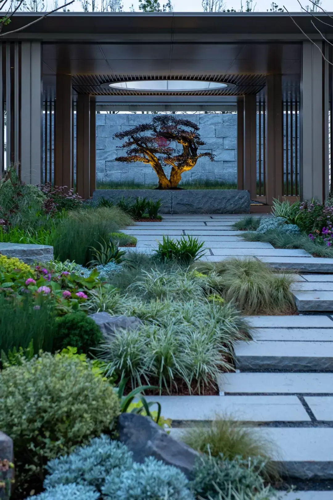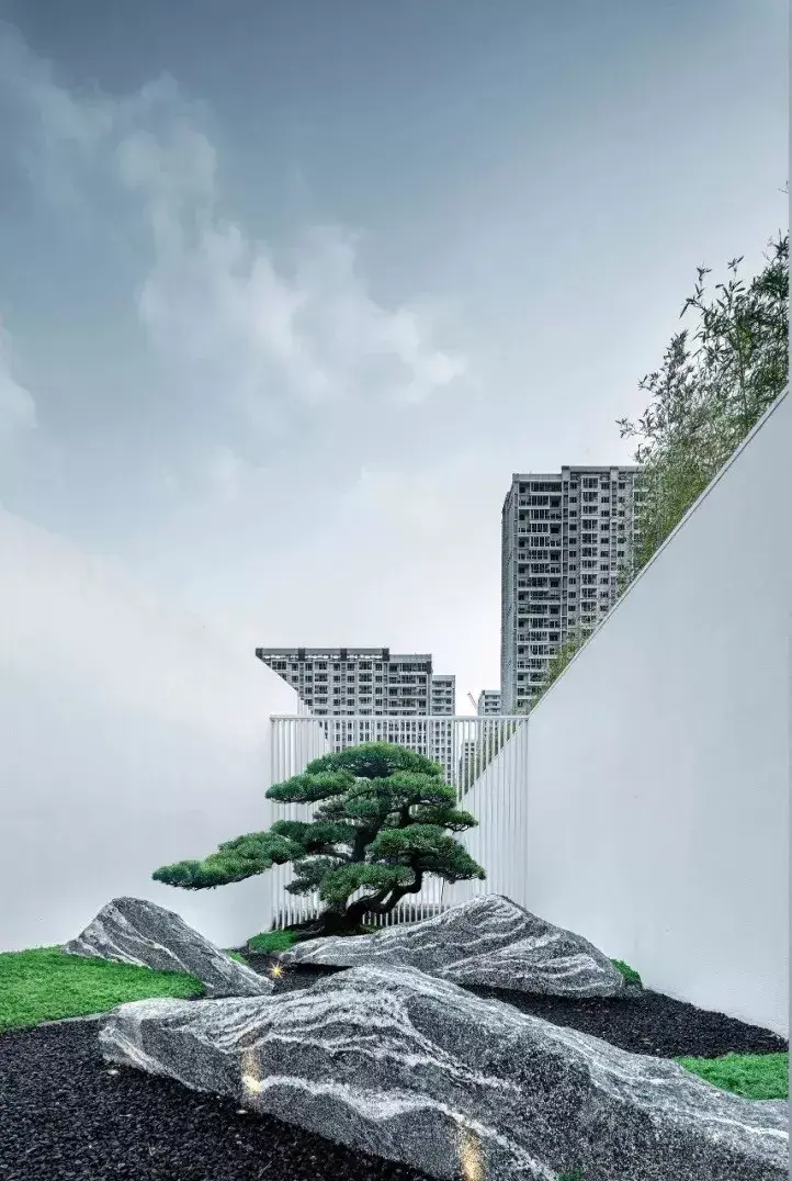 项目用现代至简的情绪和手段,沿袭中国传统文脉和语境,营造一座全新的东方园子,用极简的线条,框起这天人合一的融洽,通过“实与虚”,“光与影”,“白与黑”的设计手法,展现对场地,建筑及景观空间意境的理解, 抒发一份情怀,创造一种价值和记忆。
