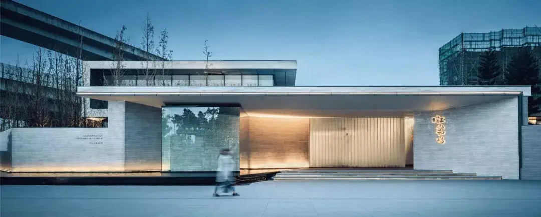 项目入口区域采用了克制的形体、空间及材料语言,构建和重塑着自然、建筑与人之间的角色关系。建筑门头采用了欲扬先抑的手法,刻意设计多重转折,吸引人们走进一片未知的空间。