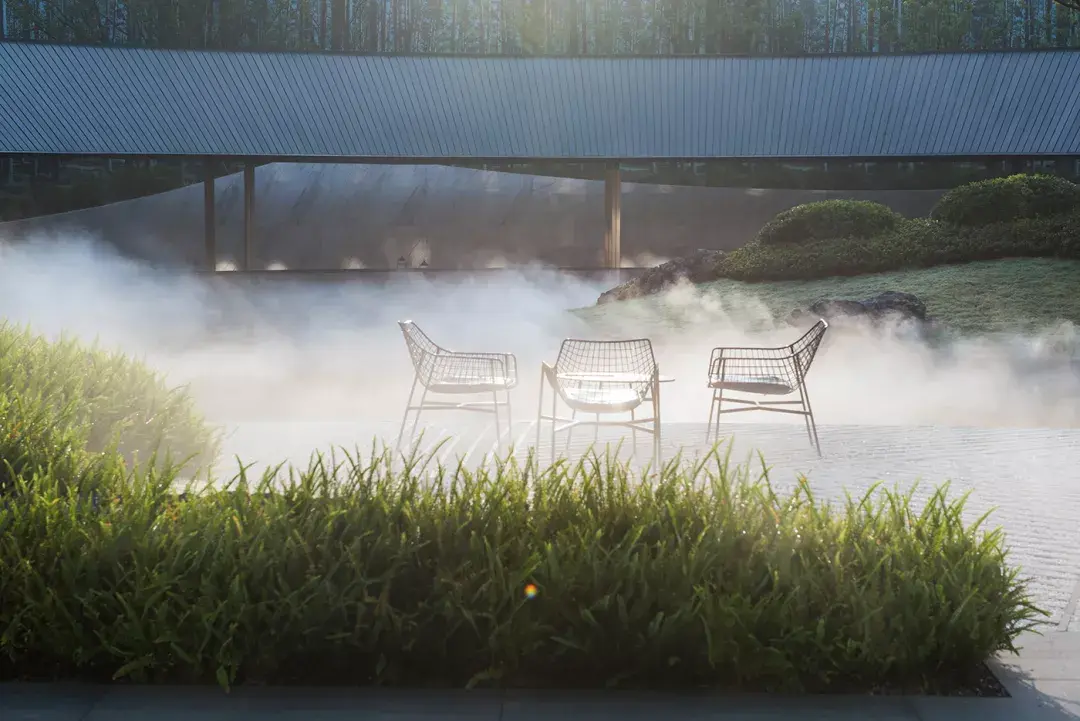 项目选择林、镜、雾、谷、岛、径为主要元素节点,以“万物境界”为示范区设计主旨,将建筑、景观、室内设计理念高度统一。由于场地面积较小,所以闹中取静,运用景观手法达到小中见大的效果,强化场地内部环境感受,营造纯粹空灵之感。