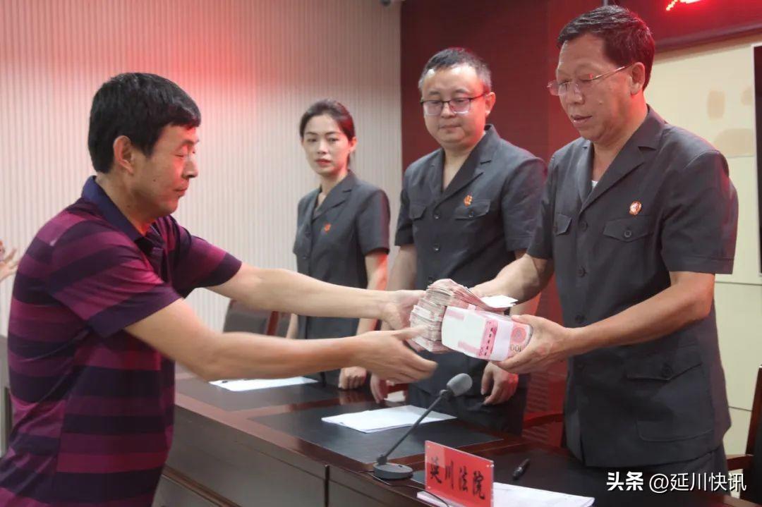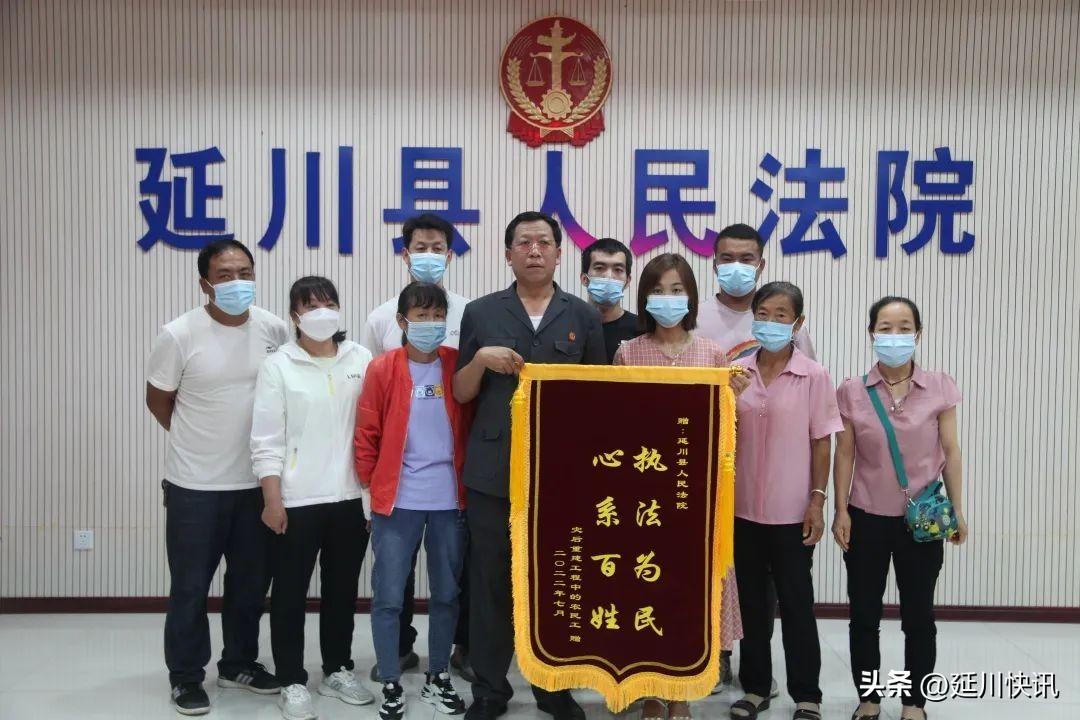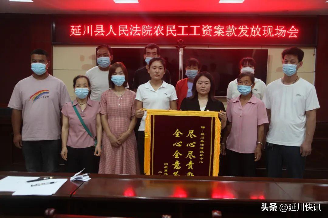 7月26日,在延川县人民法院和法律援助中心的帮助下,16.665万元如数发放到了石权、杨随虎等9人手中,拿到工资款的他们连连向办案法官及法律援助中心志愿者高建华等人表示感谢,并向延川县人民法院和延川县法律援助中心分别送上了一面写有“执法为民 心系百姓”的锦旗。