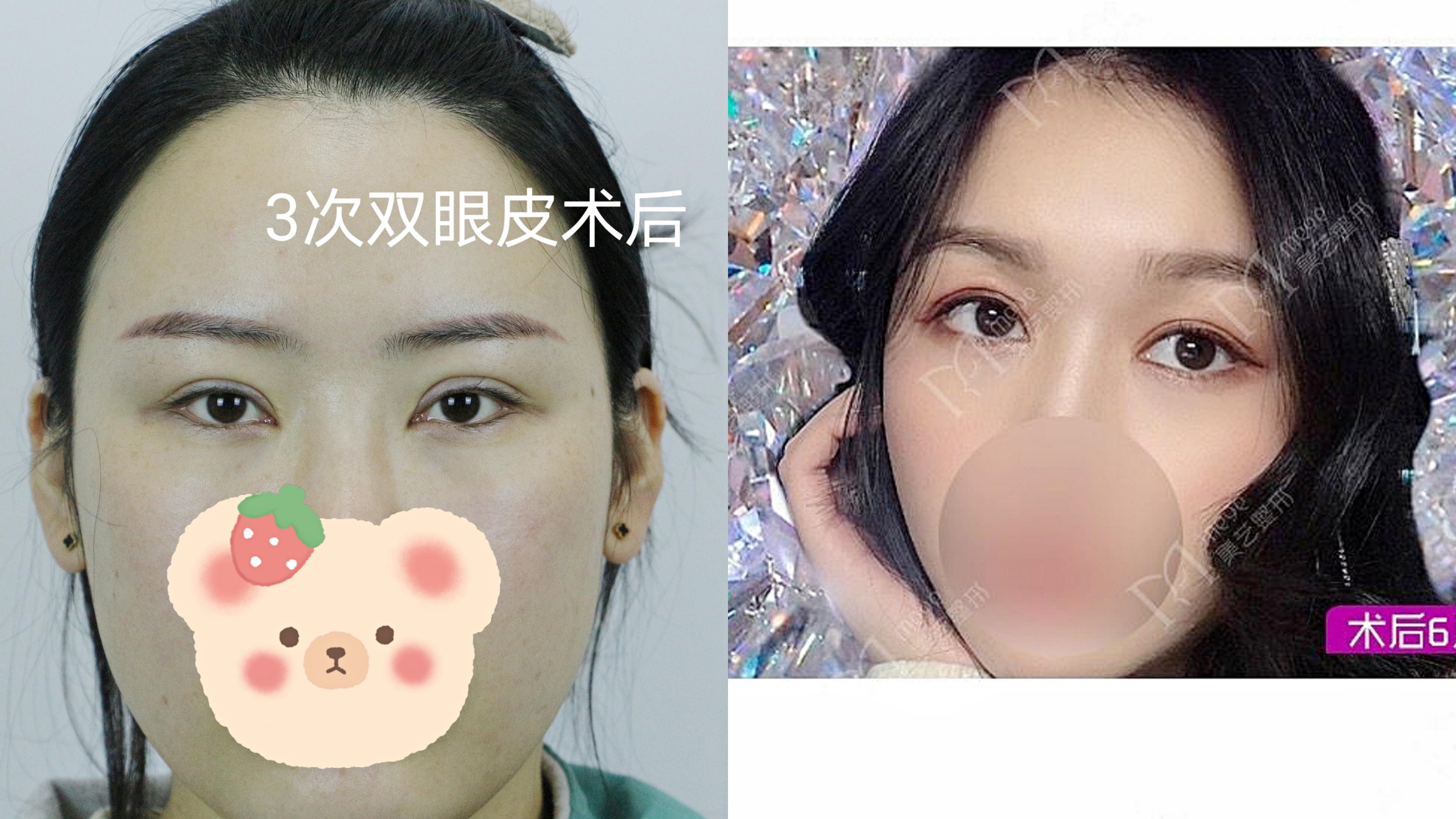 上面两个照片都是做了双眼皮手术后的效果,左边的还是做了3次后的效果,大家觉得哪个好看呢?