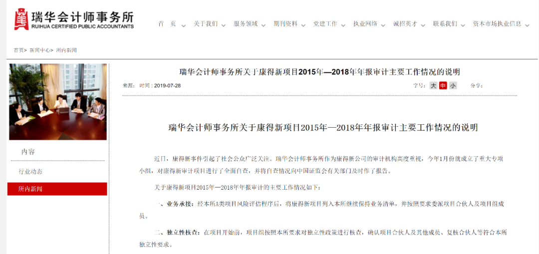 康得新刚出事那会儿,由于质疑的声音实在太多了,瑞华曾在官网发公告解释自己是清白的。