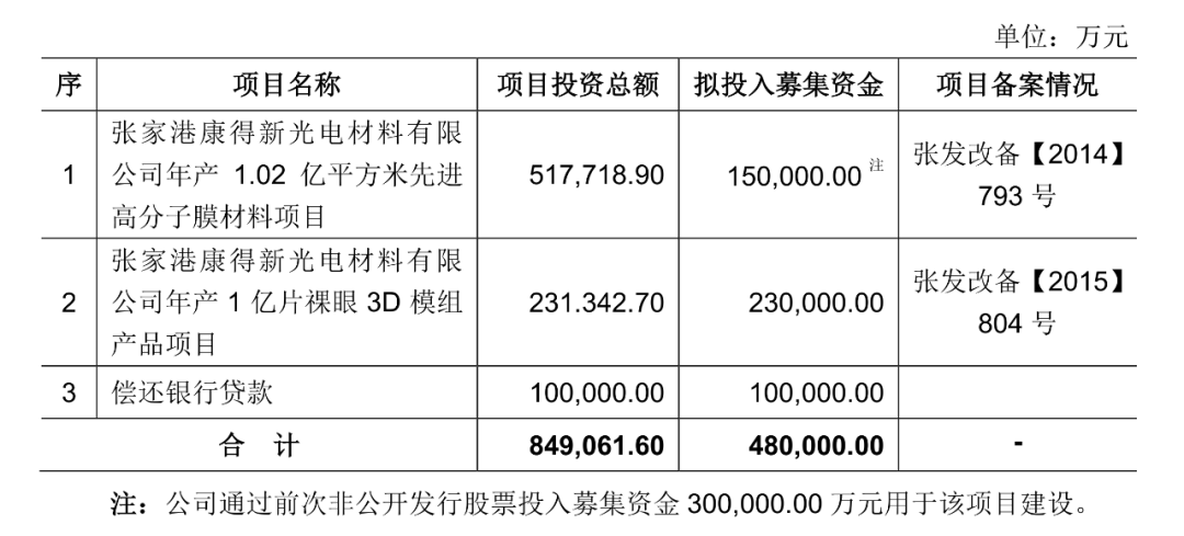 2016年,康得新通过定增募集资金47亿,其中23亿用于裸眼3D。