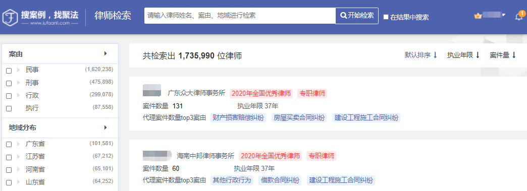 在聚法律师分析平台搜索,1分钟就能轻松找到适合自己的律师。