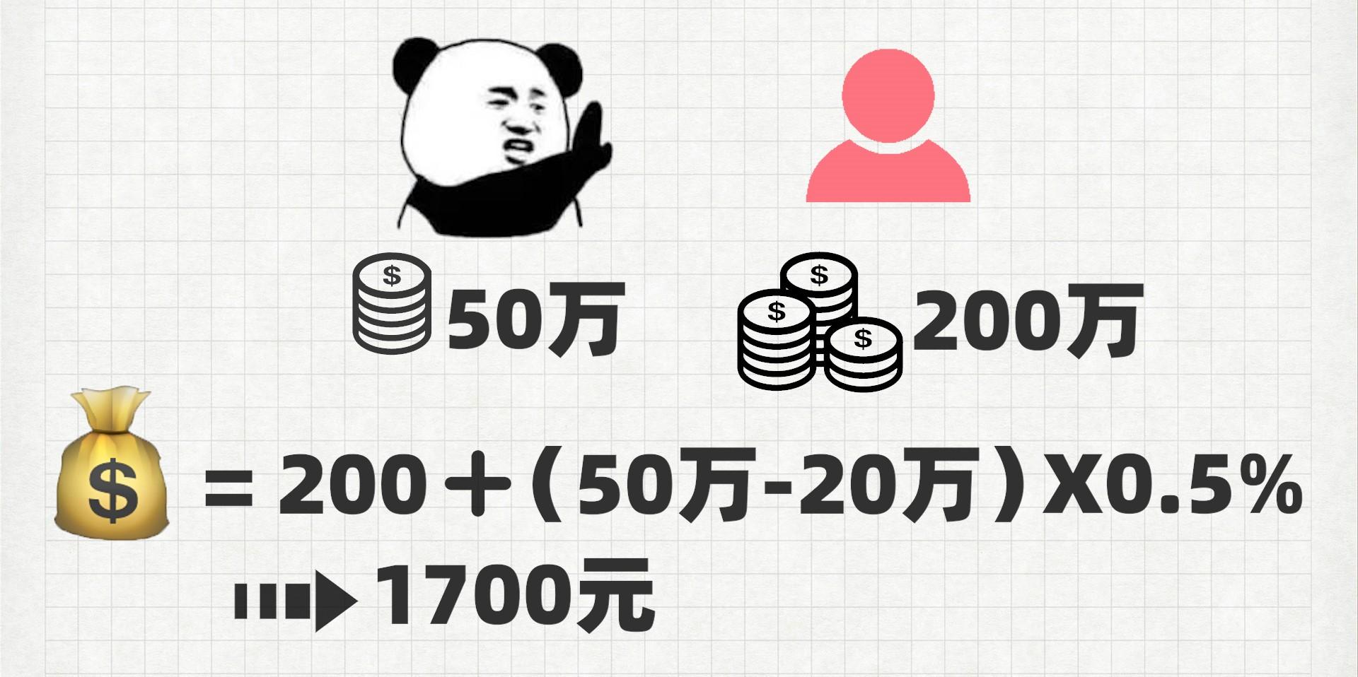 举个例子:小蓝和小红离婚,需要法院进行处理的共同财产一共有200万。按照这个标准,基础收费如果以200元来算,加上180万元的0.5%也就是9000元,案件受理费一共需要9200元。