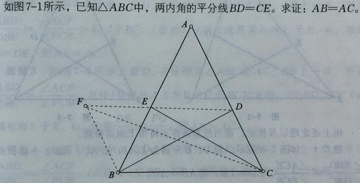 莱默斯提出来这条命题的逆命题:有两条内角平分线相等的三角形是等腰三角形。