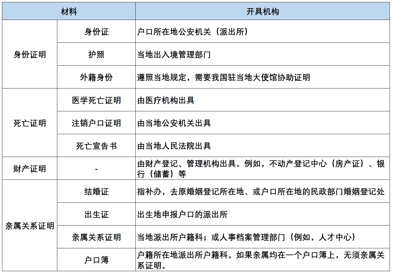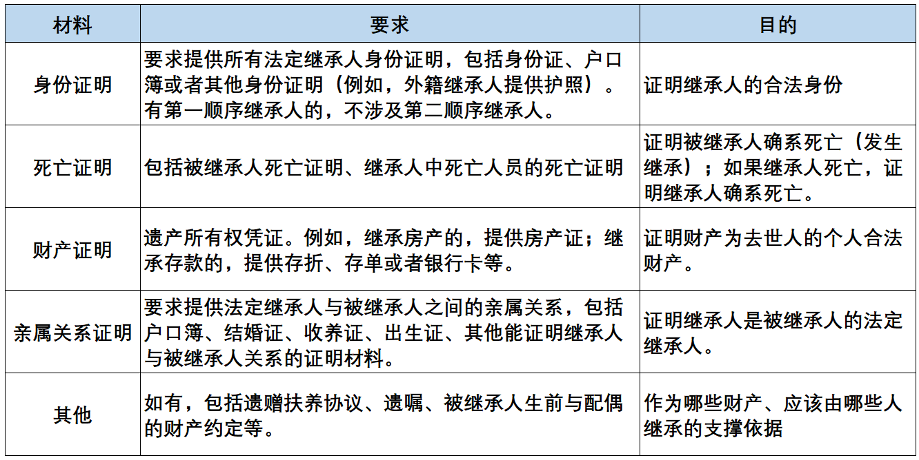 一般情况下,在办理继承手续的时候,需要提供各种证明材料,如身份证明、财产证明、死亡证明等。从这些证明要求的目的上,似乎都很有道理——需要证明确实发生了继承、确实有可继承的遗产、继承人确实有继承权。