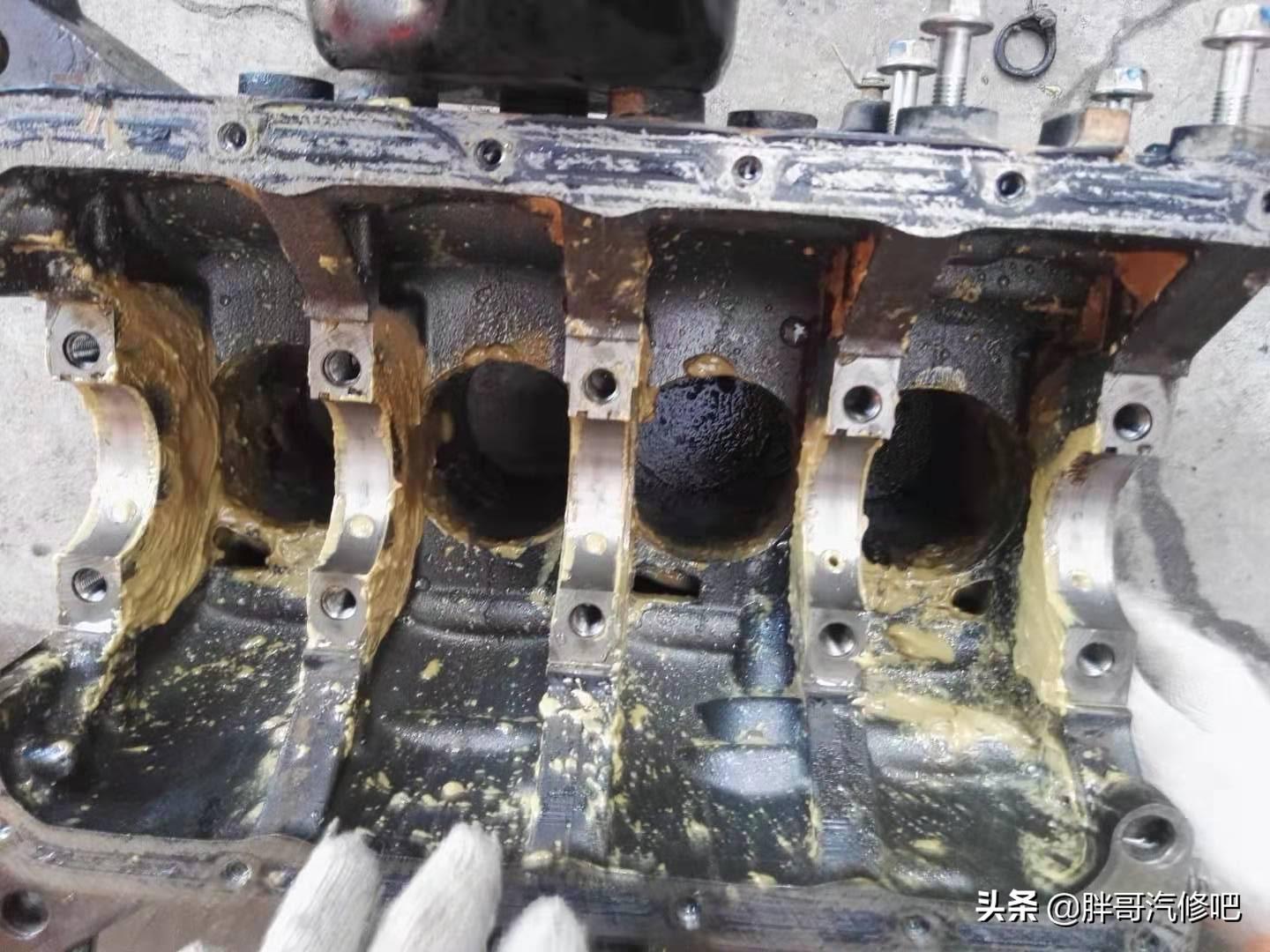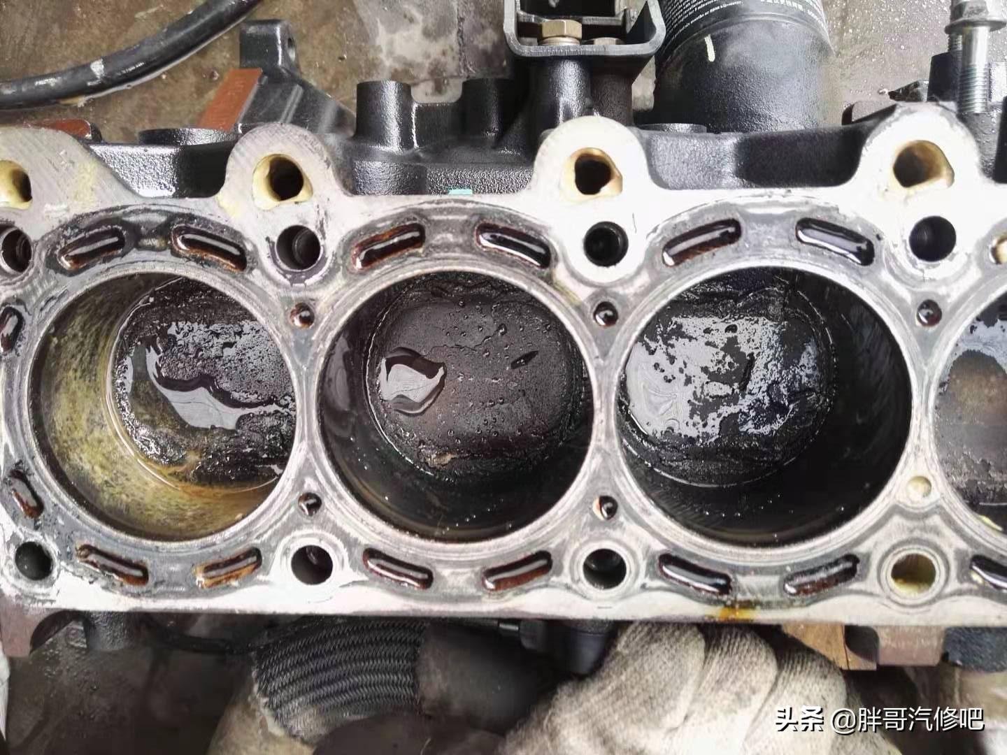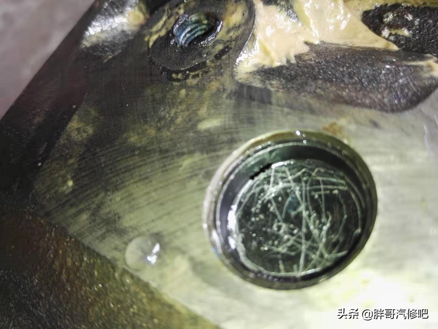 胖哥小结:水进油道有三种可能,缸体内部开裂,缸垫冲了,发动机堵头漏水。