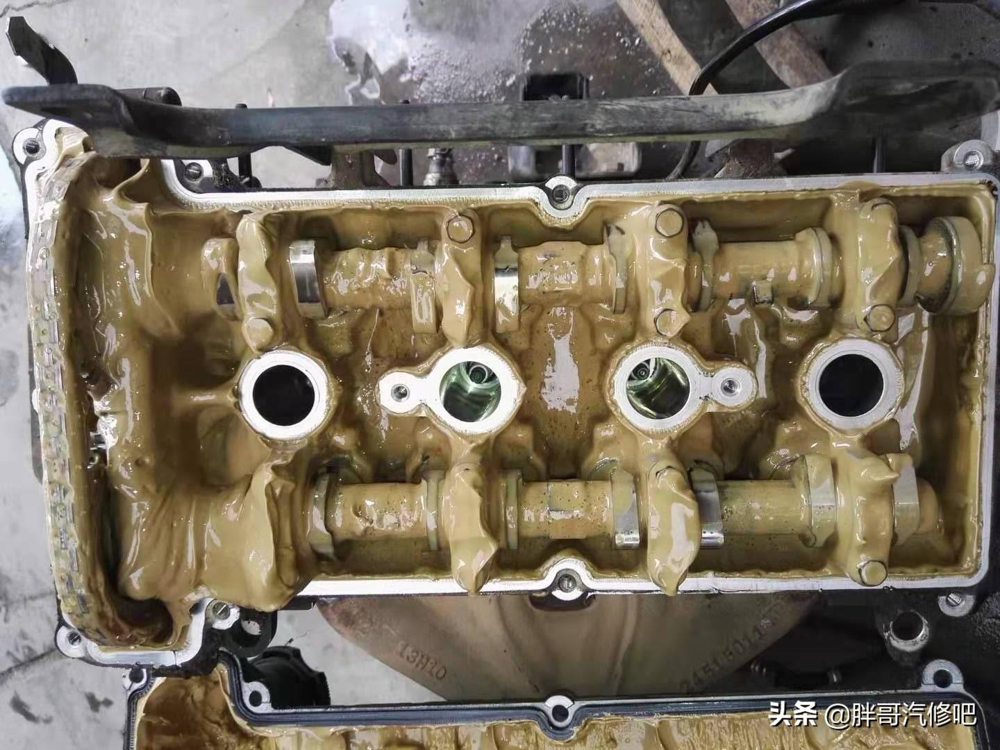 正时链条也看不见了,大家可能不信,就这样车还是开到修理厂的。