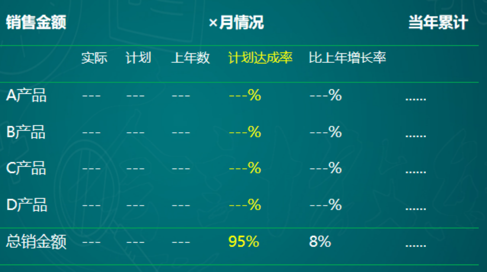 销售量计划完成xx,实际完成率x%,比去年同期增长x%;销售额计划完成x元,实际完成率95%,比去年同期增长8%。