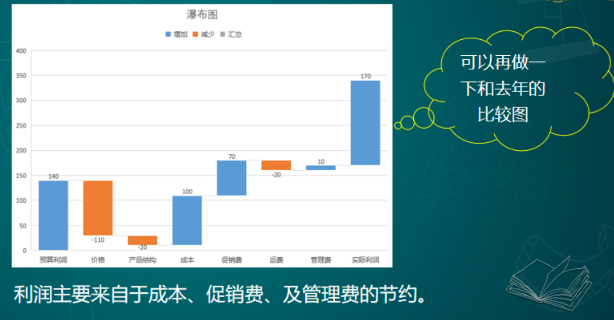 利润变动原因分析情况图(和预算的比较)