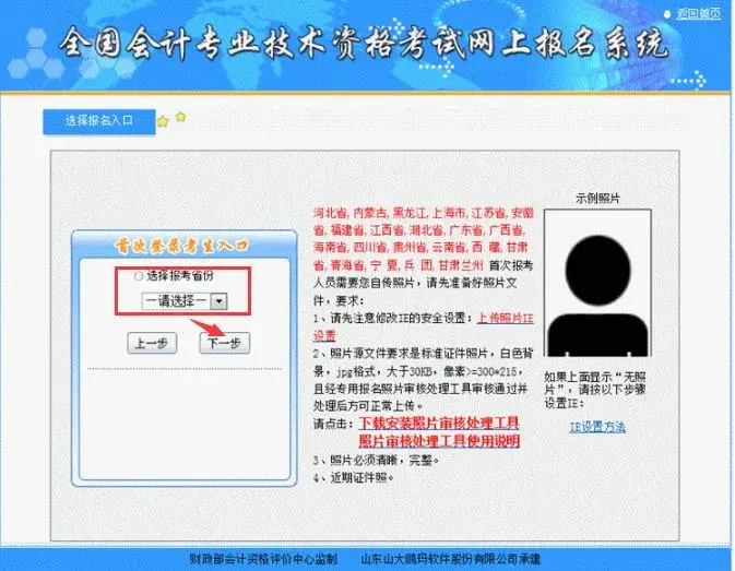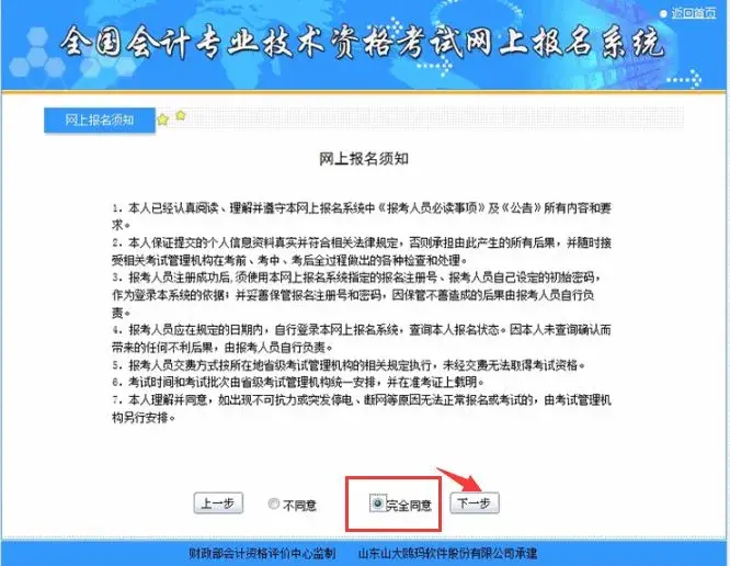 网上报名须知点击“完全同意”,然后点击“下一步”。进入省份选择页面。