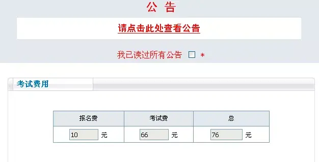 在页面上部,系统会显示考试费用;在页面底部,考生可设置报名系统登录密码及密码重置问题,当忘记报名注册号时,可凭此信息找回。