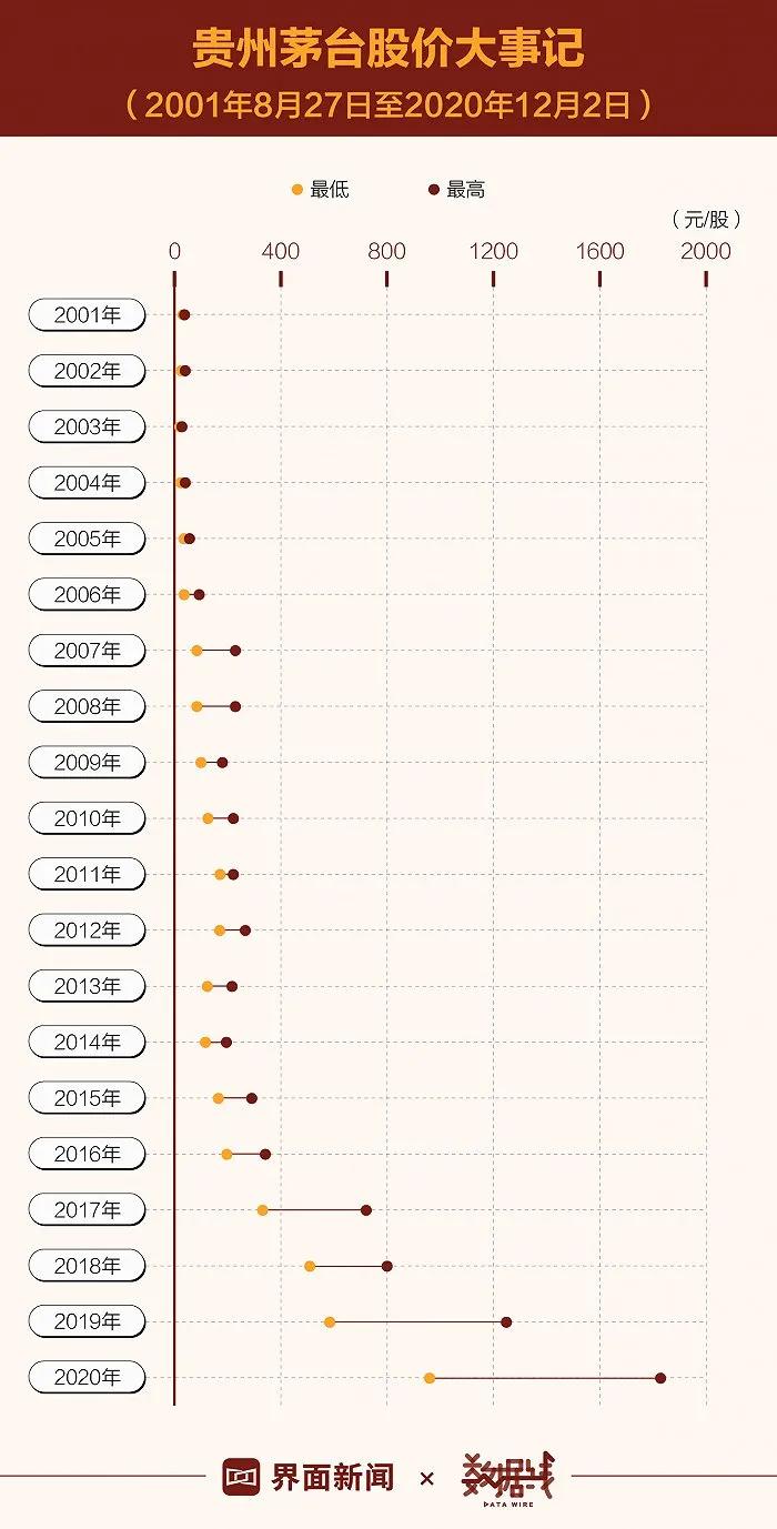 与此同时,2002年至2012年飞天茅台终端零售价分别约为280元、320元、350元、400元、500元、650元、800元、1000元、1200元、2300元,涨幅高达721.43%。