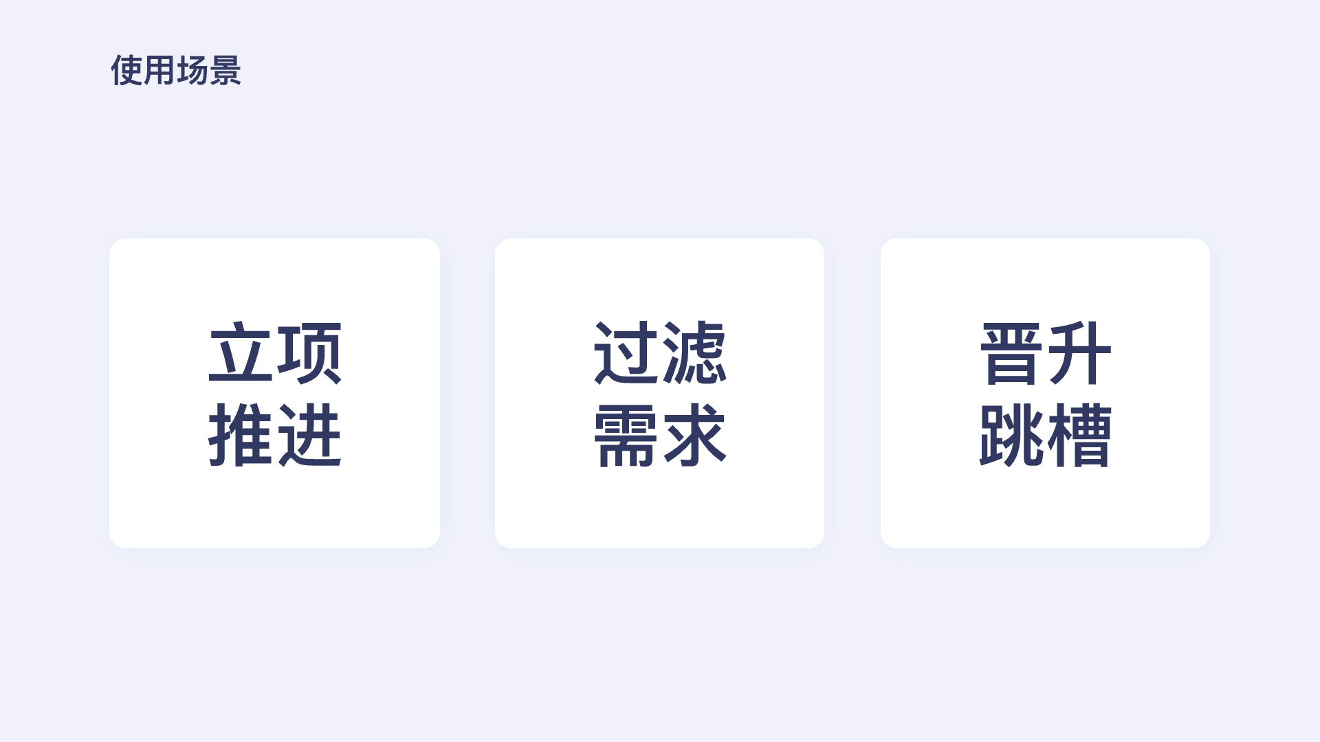 立项推进:在工作中,设计师自主立项不再收到百般刁难,轻松搞定协作方,获得项目的主动权可以体现设计师更大的价值。将设计目标分解为共识,降低推进项目全程的沟通成本。过滤需求:工作中常有产品的需求没有立足点或者中途修改需求的场景,不如直接把需求初始阶段打回。晋升/跳槽:证明自己设计创造的价值而不是只会证明自己的苦劳。有句话说得好“北上广不相信眼泪”。
