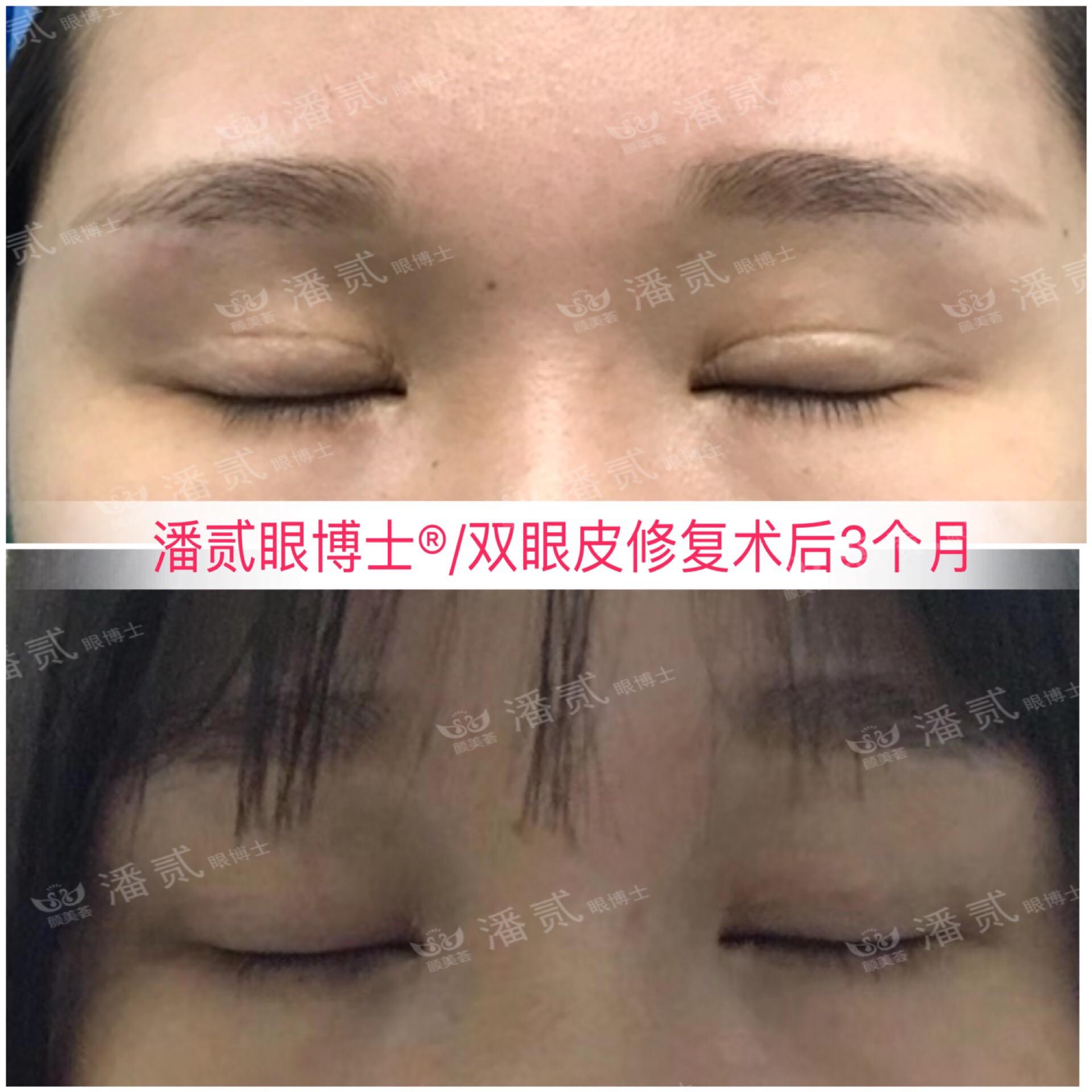 术后3个月的双眼皮消肿大半,眼睛看起来也更加协调了,因为小姑娘术前眼窝深,外侧眶骨缘低,眉弓骨高凸显上睑臃肿,属于双眼皮宽不了的类型,所以,建议此类型的眼睛还是要以自然为主。