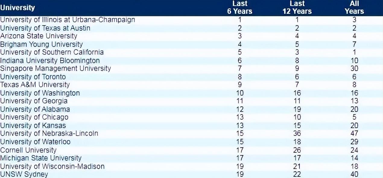 被誉为会计研究中值得关注的客观而关键的排名,杨百翰大学会计研究排名以获奖研究为基础,排名以1990年以来12种会计期刊中的同行评议文章分类为依据,进而根据作者的归属确定大学排名。