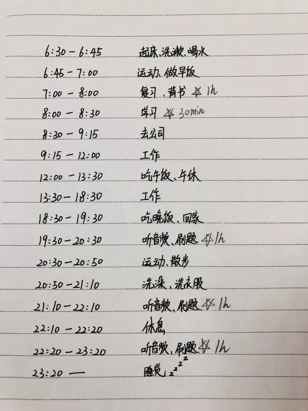 一,少熬夜,每天6:30-23:30的学习时间足够了,最重要的是效率,不要用行为上的勤勉,掩盖思考上的懒惰!